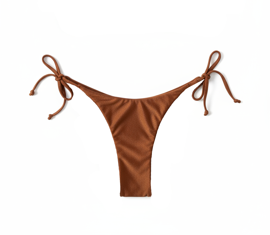 A person wearing copper-colored bottoms with ties on the sides, standing against a white background. Amora Bottoms Copper